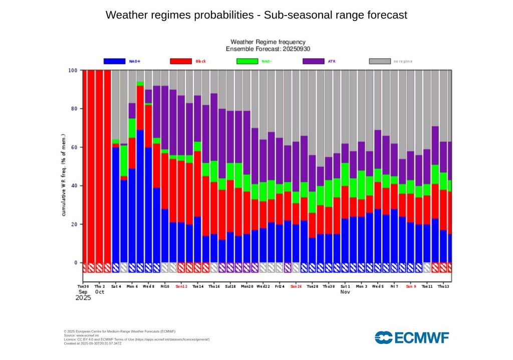 De acordo com as últimas atualizações do modelo Europeu (ECMWF), a partir deste sábado, 4 de outubro, haverá uma mudança de regime no ‘puzzle’ meteorológico europeu, instalando-se um padrão NAO+. Quando isto acontece, as depressões tendem a circular por latitudes muito altas, enquanto Portugal e outros países do sul do continente europeu permanecem sob a influência das altas pressões subtropicais.