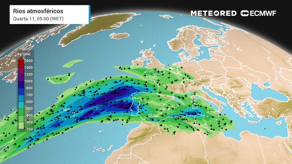 A precipitação mais intensa associada ao rio atmosférico que se aproxima é esperada para terça e quarta-feira