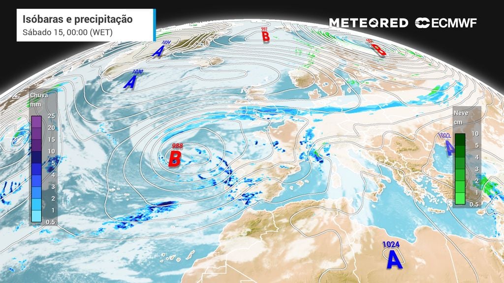 Nos Açores, espera-se um regime de aguaceiros, localmente fortes e acompanhados de trovoada, alternando com abertas, com vento por vezes forte e mar agitado, em linha com a circulação periférica da depressão a oeste/noroeste do arquipélago. Embora com menor impacto acumulado do que no território continental, a variabilidade do tempo poderá ser acentuada, com células convectivas a cruzarem as ilhas.