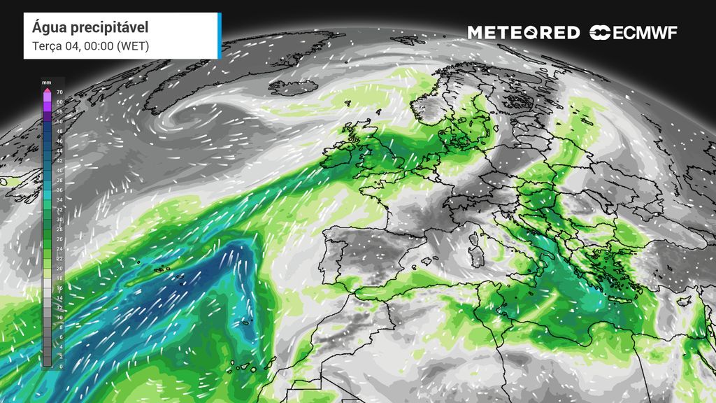 Chuva com grande intensidade entre quarta e sexta-feira, 29 a 31 de outubro, marcada por frentes atlânticas sucessivas. Quinta dá tréguas parciais, mas humidade aproxima-se do Noroeste ao final do dia. Sexta-feira concentra o maior risco no Sul, com valores acumulados localmente elevados, trovoada e vento por vezes forte.