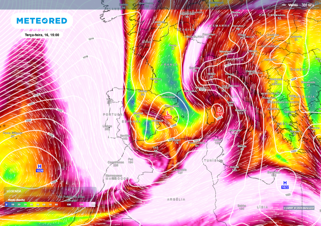 Uma nova ondulação do jato polar entre segunda (15) e terça-feira (16) interferirá na distribuição dos centros de ação atmosférica - anticiclone dos Açores e anticiclone entre sudeste da Europa e norte de África -, permitindo a entrada de uma linha de instabilidade ou frente que posteriormente se isolará da circulação geral e dará origem a uma nova depressão isolada em altitude, como foi o caso de Emilia.
