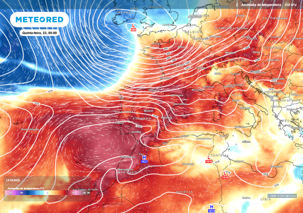 O nosso país vai estar sujeito à influência de massas de ar atlântico bastante temperadas, pelo que o cenário de tempo frio não se coloca (embora pontualmente algumas zonas do Norte e Centro possam registar valores inferiores à média de referência). Efetivamente, o modelo Europeu prevê uma semana com temperaturas que poderão estar entre 1 e 3 ºC acima da média em Portugal continental, arquipélago da Madeira e grande parte do arquipélago dos Açores. A exceção seria o Grupo Ocidental açoriano.
