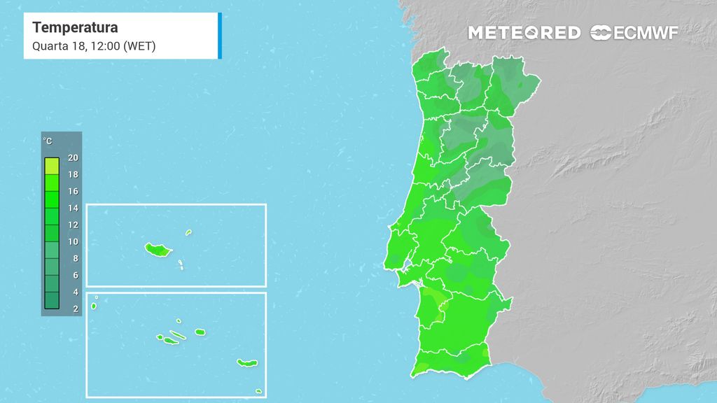 Ainda assim, é expectável que no sábado se denote uma ligeira subida dos valores, que poderá ser mais vincada na madrugada de domingo. Este último, espera-se que seja um dia bastante agradável do ponto de vista térmico, com valores de temperatura máxima previstos acima dos 20 ºC em diversos pontos de Norte a Sul do país.