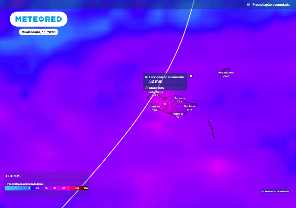 Os avisos amarelo e laranja de precipitação e agitação marítima já estão ativos. O período mais crítico de chuva está previsto entre as 06:00 e as 12:00 de terça-feira (9), principalmente para as Regiões Montanhosas e Costa Sul. Preveem-se ondas até 4,5 metros em Porto Santo e Costa Norte.