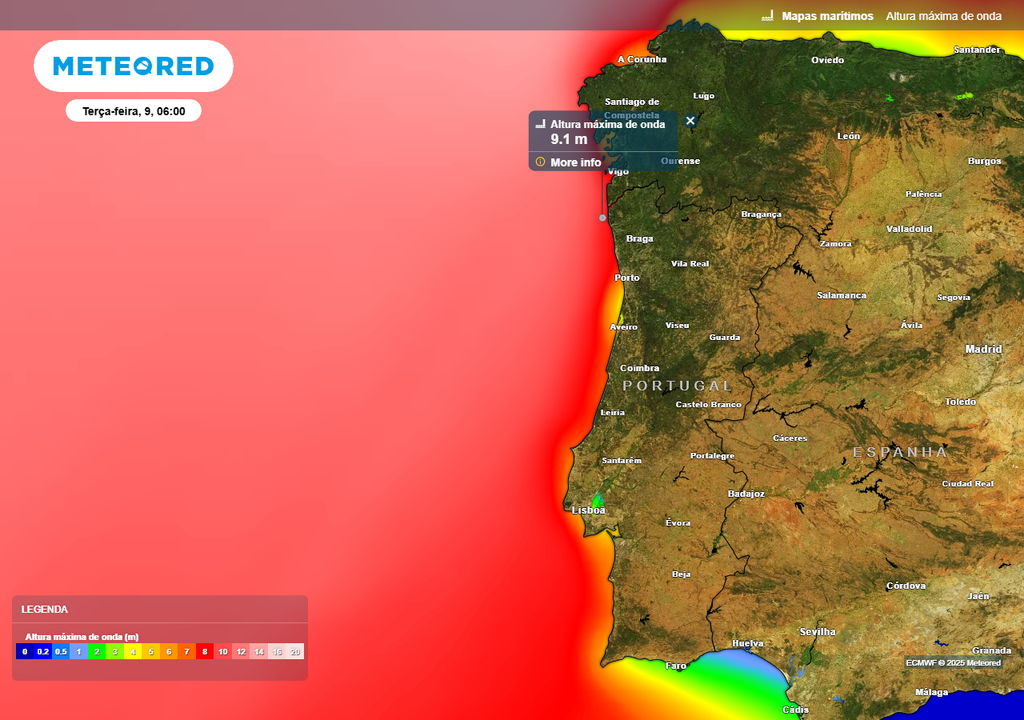 No litoral Norte (distritos de Viana do Castelo, Braga e Porto), espera-se que o temporal marítimo seja ainda mais agreste, especialmente entre as 18:00 de hoje (8) e as 15:00 de terça-feira (9), período em que as ondas poderão atingir uma altura máxima de 10 metros.