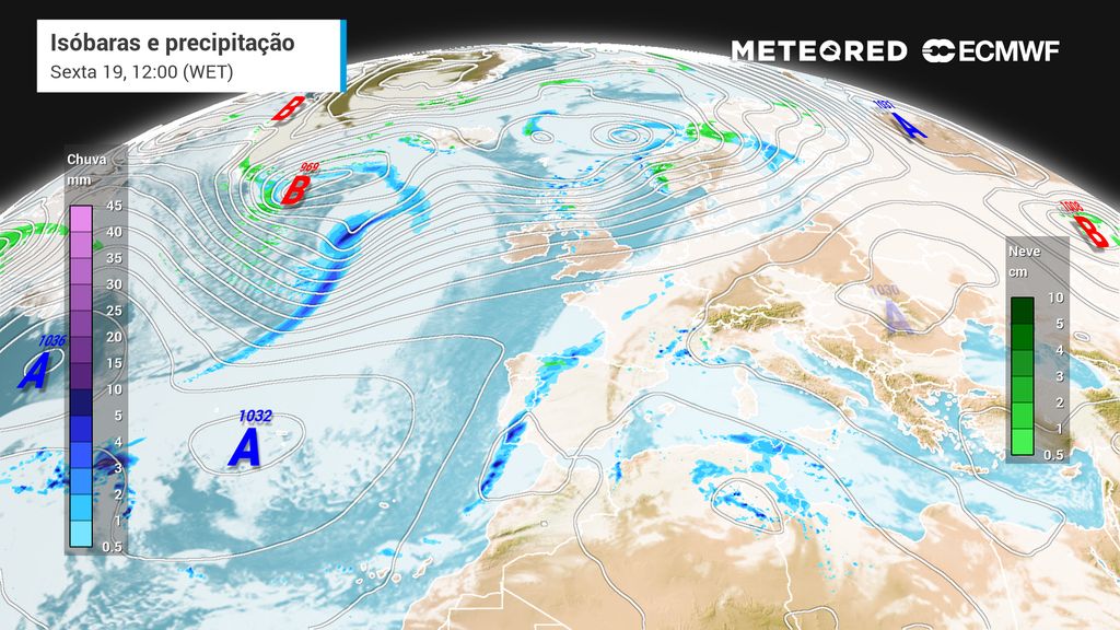 No dia seguinte, 19 de dezembro (sexta-feira), mantém-se o padrão de instabilidade, com passagem residual da frente fria durante a madrugada e sucessão de aguaceiros ao longo do dia, alternando com algumas abertas.