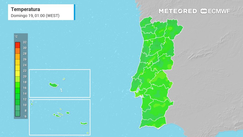 A persistência de condições estáveis, com vento fraco e ausência de precipitação, contribuirá para um ambiente seco e soalheiro, favorecendo também uma subida gradual das temperaturas mínimas em várias regiões do interior.