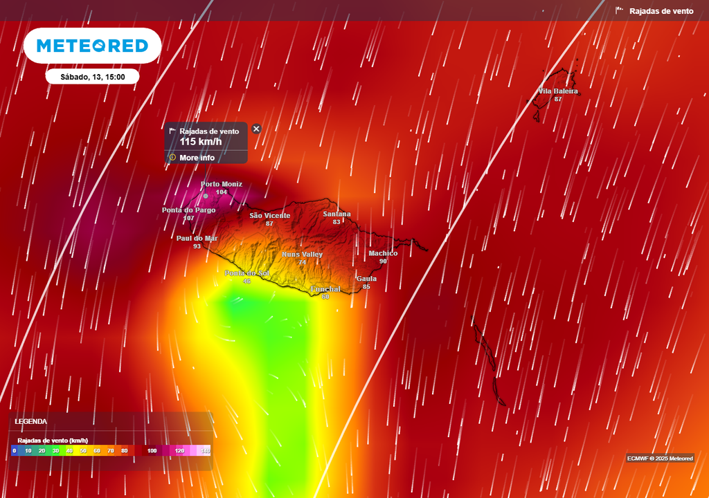 A chuva não será a única protagonista do temporal adverso na Madeira. A proximidade entre o anticiclone dos Açores e a baixa pressão isolada em altitude fará com que as isóbaras se estreitem entre si, gerando intensos canais de vento que produzirão fortes rajadas e ondas muito altas.