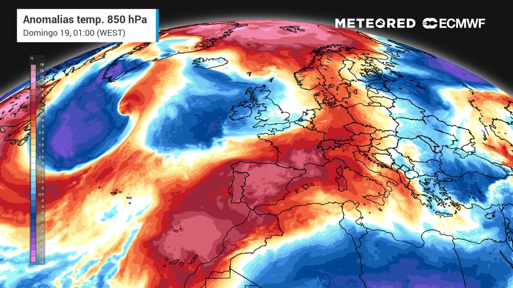O mapa de anomalia da temperatura ajuda a perceber quão fora do normal estão os valores previstos.