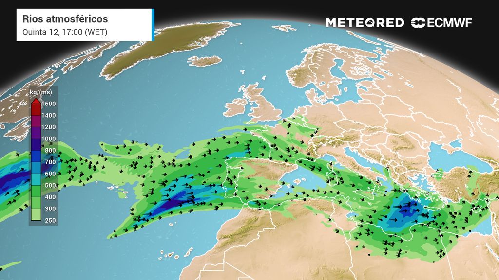 A mais recente atualização do modelo Europeu intui que a parte mais ativa do rio atmosférico procedente das Caraíbas afetará toda a geografia do Continente (embora com contrastes regionais). É importante salientar que ao longo de terça-feira, dia 10, o contributo do rio de humidade já será bastante significativo para a precipitação em Portugal continental, especialmente durante a manhã deste dia nas Regiões Norte e Centro e no litoral Oeste.