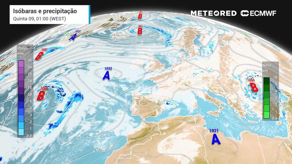A crista anticiclónica que se estende sobre Portugal Continental atuará como barreira à penetração de frentes atlânticas mais húmidas. Esta configuração já tem sido destacada em previsões recentes, onde se sublinha que Portugal Continental está sob efeito predominante de alta pressão, reduzindo bastante a probabilidade de chuvas generalizadas.