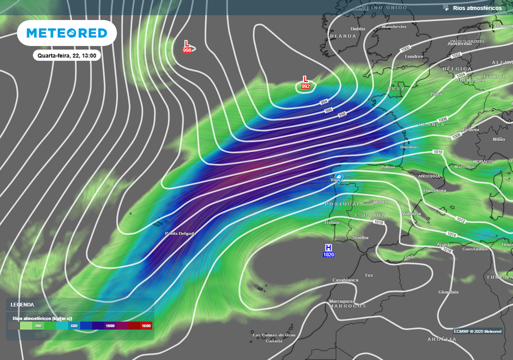 Além disso, entre as depressões e as altas pressões subtropicais, que estarão bastante deslocadas para sul, será canalizada uma massa de ar tropical marítimo, muito amena e húmida, e inclusive vários rios atmosféricos ou de humidade poderão atingir Portugal continental na próxima semana, reativando e reforçando a chuva nalgumas zonas, especialmente nas que estão mais expostas aos ventos de Oeste ou de Sudoeste.