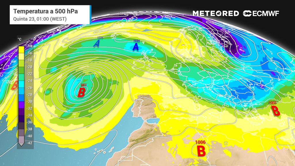 Na terça-feira (21) prevê-se que a já referida depressão atlântica descreva uma deslocação vertiginosa para norte em paralelo à faixa costeira ocidental de Portugal continental. Ao posicionar-se a oeste do nosso país, os mapas revelam que esta baixa pressão descreverá uma circulação retrógrada (de oeste para leste), fazendo com que parte das linhas de instabilidade associadas alcancem a nossa geografia e gerem aguaceiros e trovoadas.