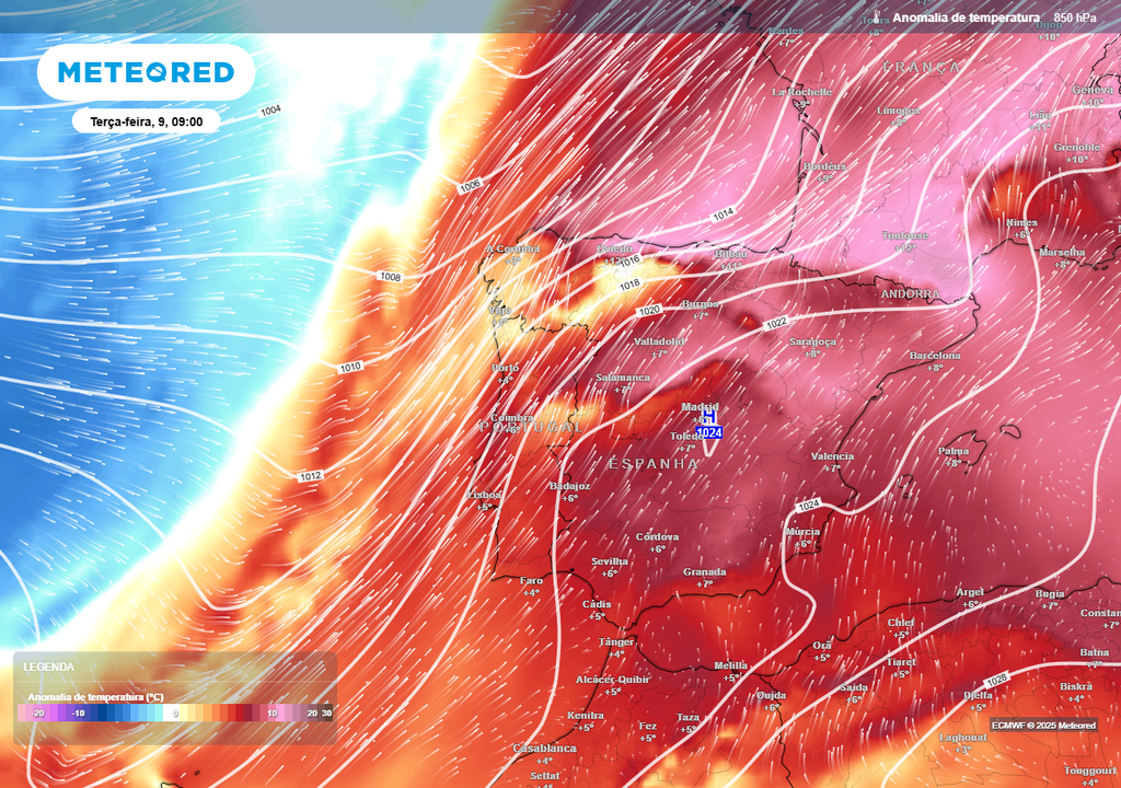 Em contrapartida, o elemento meteorológico que assumirá mais protagonismo será a temperatura, que registará uma subida generalizada, tanto nas máximas, como sobretudo nas mínimas.