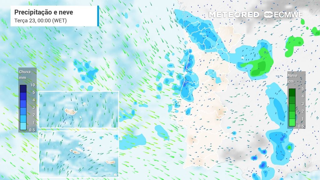 Esta queda de neve, mesmo em áreas menos comuns, resultará da junção da precipitação com temperaturas baixas. Para a próxima madrugada esperam-se até -5 ºC na Serra da Estrela e até -3 ºC nas regiões montanhosas do Norte. O Nordeste Transmontano também poderá contar com valores até -3 ºC até à madrugada de terça-feira, dia 23.
