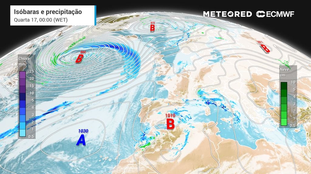A atmosfera entra num período de transição relevante na primeira metade da semana, num contexto marcado pelo enfraquecimento da corrente de jato e pela tendência clara para a formação de um bloqueio em latitudes mais altas da Europa.