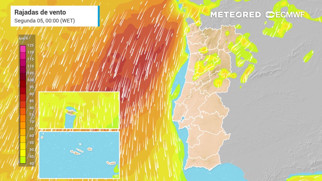 Nas horas seguintes de sábado (3) a intensidade do vento desagravará significativamente, embora ainda estejam previstas rajadas até 70 km/h na parte ocidental da Madeira e até 110 km/h nas Regiões Montanhosas.