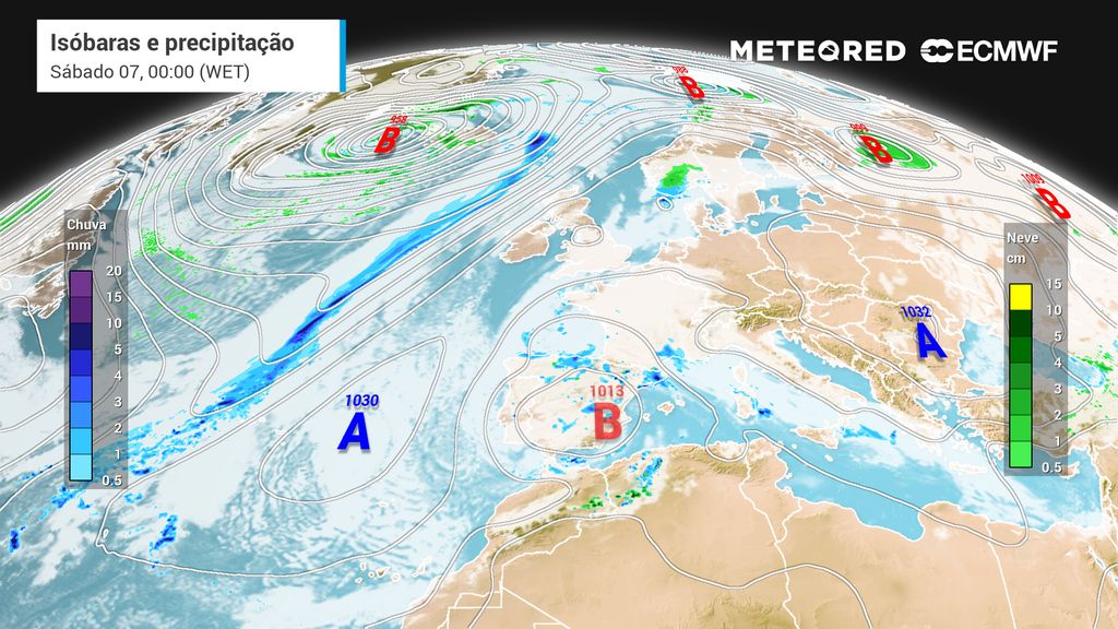 A atmosfera encontra-se em reorganização. O anticiclone escandinavo, bem instalado no norte da Europa, impede a progressão normal das depressões atlânticas para latitudes mais elevadas. Como consequência, o jato polar ondula de forma mais acentuada e força a formação de um cavado sobre a Península Ibérica.