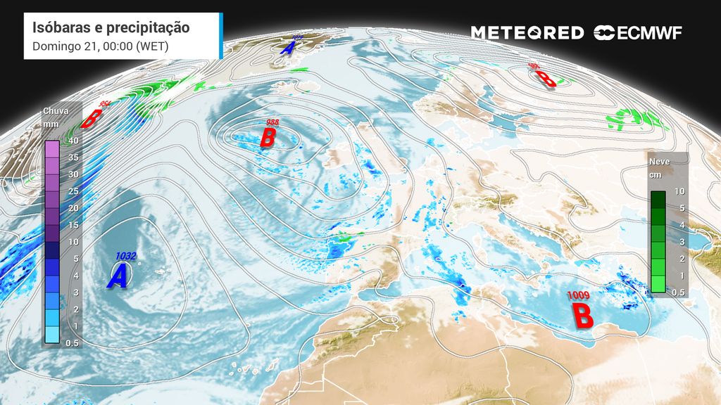 Durante a madrugada de domingo, e devido à chuva e às temperaturas mais baixas, a neve poderá intensificar-se em vários pontos do Norte e Centro, sendo que a chuva poderá cobrir boa parte do território, de Norte a Sul. Ainda assim, espera-se uma dissipação gradual, também de Norte para Sul, da chuva, a partir das primeiras horas da tarde desse dia (21).