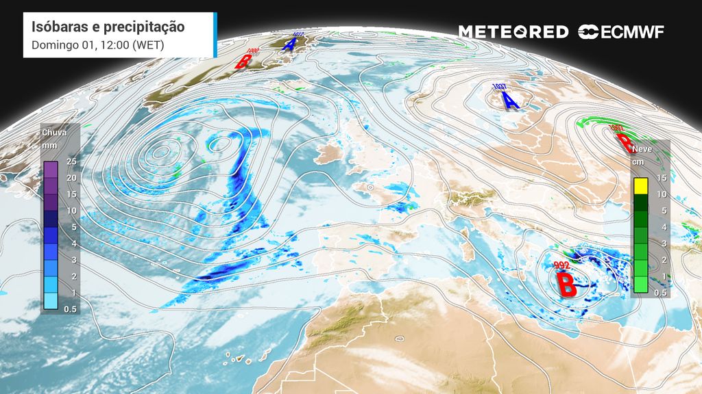 Este padrão resulta de uma circulação atlântica ativa, que começa a ganhar expressão a partir do final de sábado e se prolonga ao longo de domingo, favorecendo a entrada sucessiva de ar húmido sobre a faixa costeira, especialmente no litoral Norte e Centro durante o período noturno.