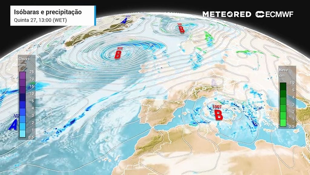Após um período prolongado de estabilidade sob o domínio de um bloqueio anticiclónico que se estendeu até esta semana, o modelo de referência (ECMWF) confirma a reativação da circulação atlântica. Esta alteração sinóptica irá introduzir uma sequência de frentes de precipitação que quebrarão a estabilidade, definindo duas datas-chave de instabilidade: sábado, 29 de novembro, e terça-feira, 2 de dezembro.