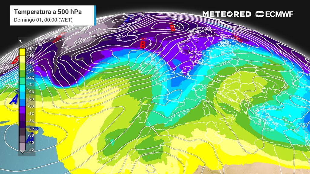 Os mapas de geopotencial a 500 hPa mostram o desenvolvimento de uma crista anticiclónica robusta sobre a Escandinávia, padrão típico de bloqueio escandinavo. Este bloqueio força o desvio do jato polar e tende a empurrar ar frio para latitudes mais baixas da Europa. No entanto, os modelos indicam que esta configuração será transitória.