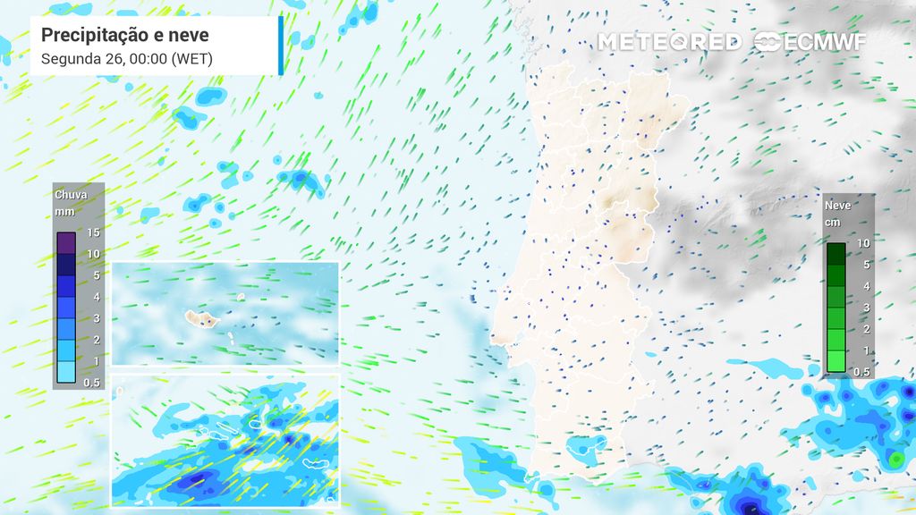 Esta baixa será responsável por enviar sucessivas linhas de instabilidade e aguaceiros pós-frontais para o nosso país na primeira metade de sábado (24). Além disto, prevê-se neve em diversos locais, inclusive a cotas baixas, como já foi referido noutras previsões.