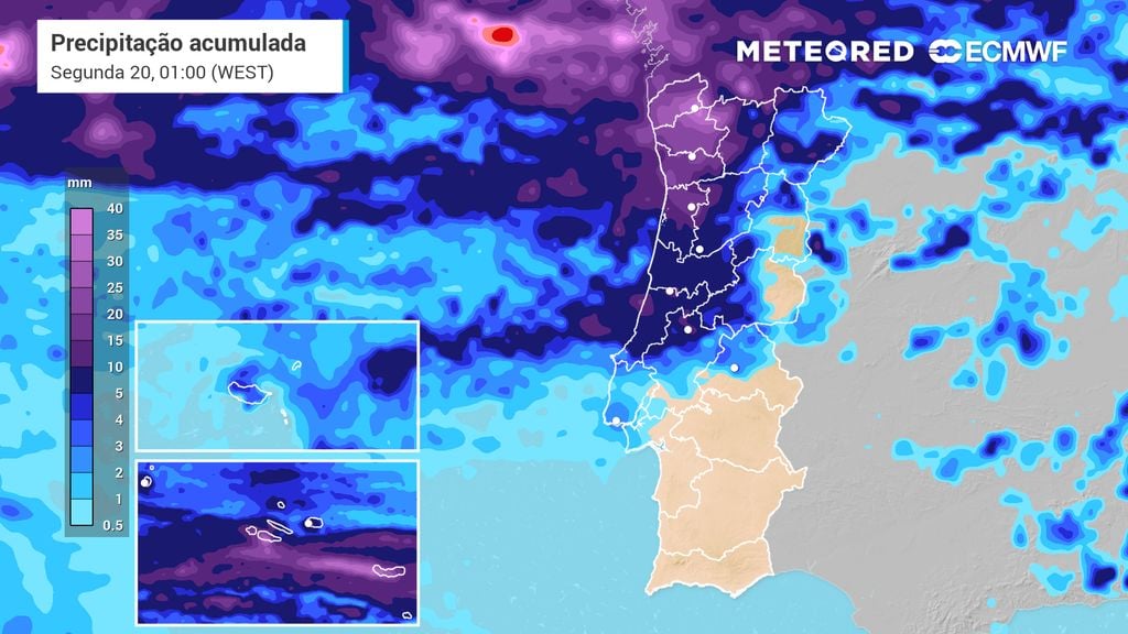 O elemento determinante é a alteração do regime de grande escala. O anticiclone recua e permite que as depressões atlânticas circulem em latitudes mais baixas, abrindo a porta a vários impulsos frontais ao longo da próxima semana. Os modelos de referência, como o usado pela nossa equipa da Meteored, isto é, o ECMWF, sugerem uma sucessão de perturbações capazes de garantir precipitação especialmente no Norte e Centro, intercalada com abertas devido ainda à influência residual de altas pressões. Em termos térmicos, o cenário mantém-se anómalo para a época. Mesmo com chuva, persistem máximas e mínimas relativamente elevadas para outubro.