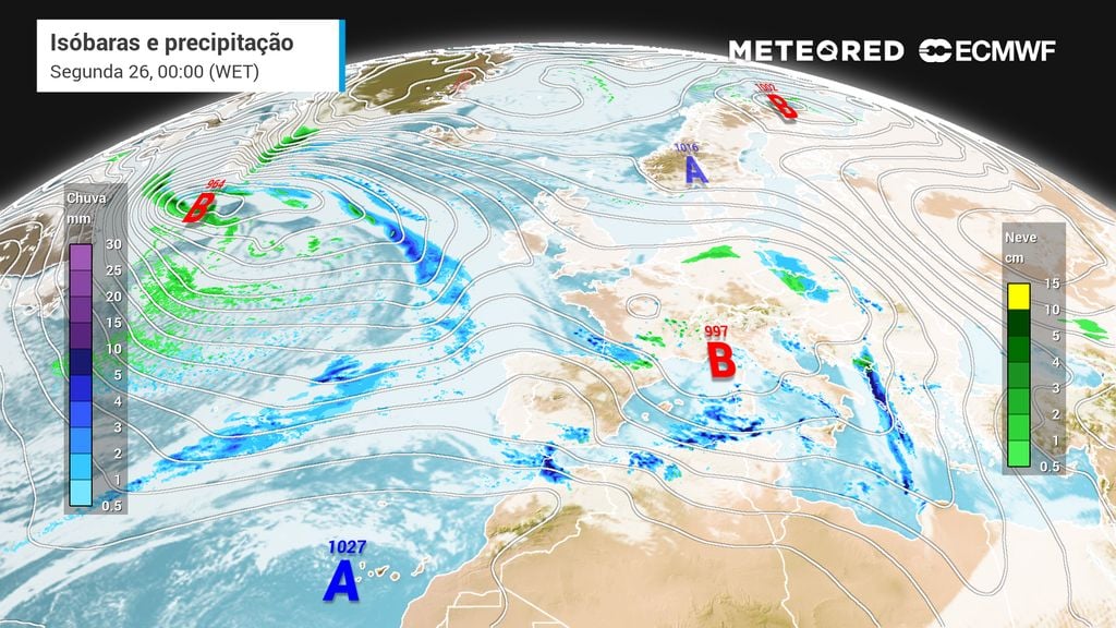 A tempestade Ingrid resulta de um bloqueio persistente de altas pressões em latitudes elevadas, que força o jato polar a deslocar-se para sul e favorece a intensificação das depressões atlânticas. Os fenómenos mais severos concentram-se entre hoje e o fim de semana.