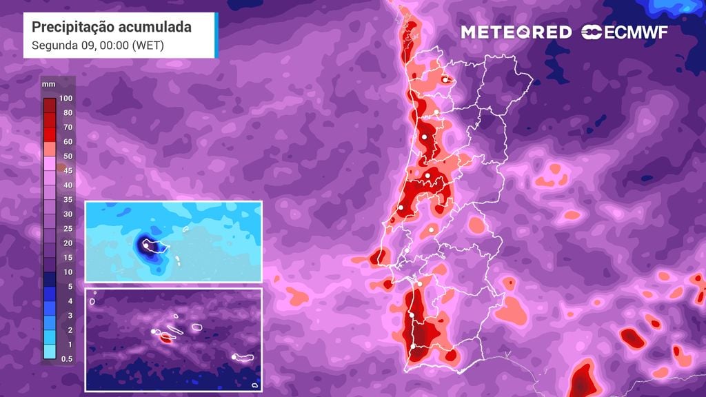 Ao longo do dia, a chuva deverá manter-se frequente, com períodos de intensidade moderada a forte. Os acumulados previstos situam-se, de forma geral, entre 30 e 50 mm em 24 horas, podendo localmente aproximar-se de 60 mm em situações de maior persistência. Em meio urbano, estes valores aumentam o risco de inundações rápidas, sobretudo em zonas com sistemas de drenagem mais limitados.