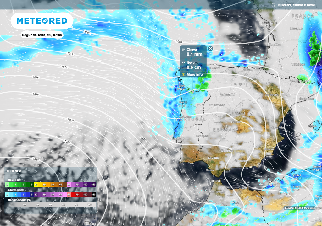 O que vai decidir o “quão baixo” pode nevar não é apenas a temperatura. Caso a depressão se posicione próxima da Península Ibérica e mantiver precipitação durante as horas com as temperaturas mais baixas, a cota pode baixar e a probabilidade de acumulação aumentará.