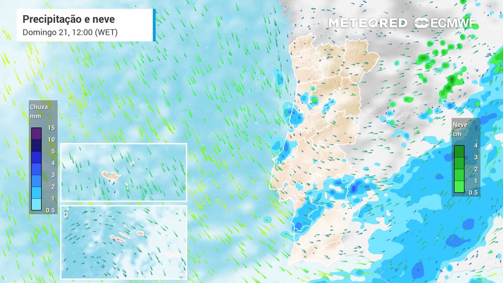 O intervalo mais favorável para a queda de neve estende-se da madrugada de domingo (21 de dezembro) até segunda-feira (22 de dezembro). As regiões com maior probabilidade de precipitação sob a forma de neve situam-se no Norte e no interior Centro, com destaque para seis distritos: Viana do Castelo, Braga, Vila Real, Bragança, Guarda e Castelo Branco.