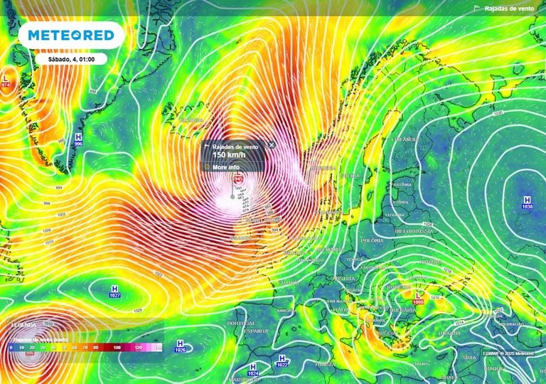 Ciclogénese explosiva nas Ilhas Britânicas produzirá efeitos indiretos no tempo em Portugal entre sexta e sábado, trazendo nebulosidade, possibilidade de chuva fraca, descida das temperaturas e um forte temporal de vento de Oeste ao nosso país.